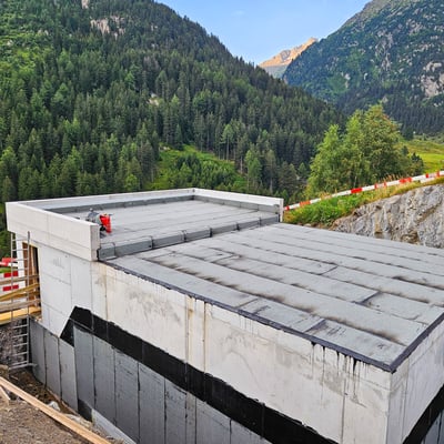 Für eine sichere Wasserversorgung haben wir das neue Wasserreservoir in der Val Medel mit einer bituminösen Abdichtungen mit Flüssigkunststoffabschlüssen versehen, die das Bauwerk langfristig vor den Einflüssen der Witterung und Feuchtigkeit aus dem Erdreich schützt.