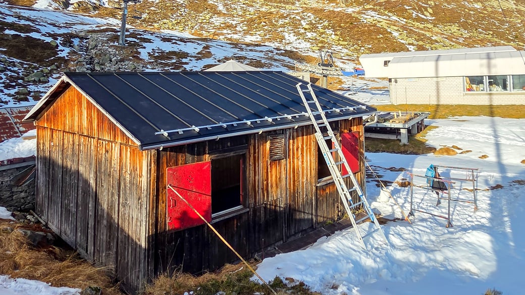 In den Spätherbst haben wir die Gebäude der «Bar Nevada» sowie Betriebsanlagen der Sessellifte wieder winterfit gemacht. Während die Hütte der «Bar Nevada» ein neues Blechdach und ein Flachdach erhalten hat, waren an den Sesselliften Gendusas und Lai Alv Reparaturarbeiten am Dach und an Dichtungen notwendig, um Wassereinbruch zu verhindern.