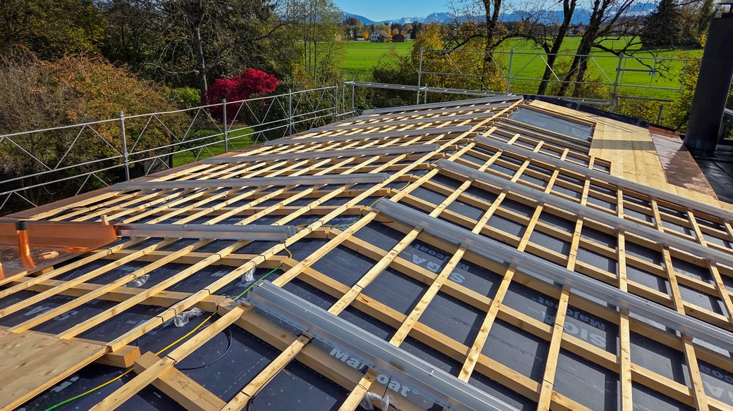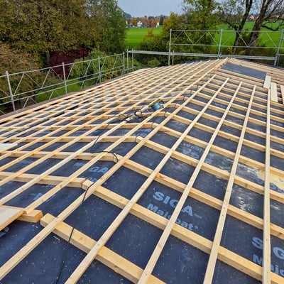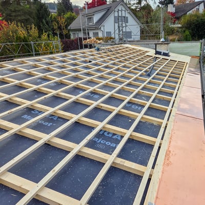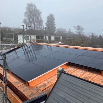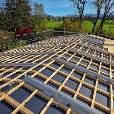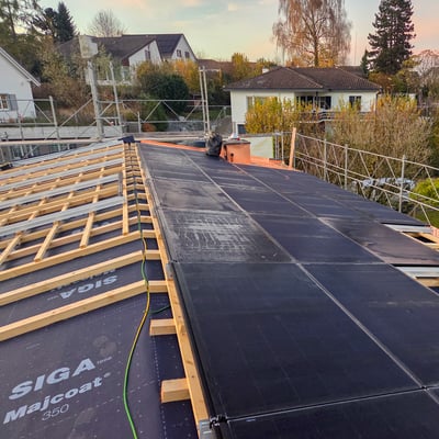 Bei diesem Einfamilienhaus in Esslingen im Kanton Zürich haben wir das alte Eternitdach entfernt, das Dach komplett neu aufisoliert und als Blechdach neu gedeckt. Gleichzeitig wurde eine Photovoltaikanlage installiert.