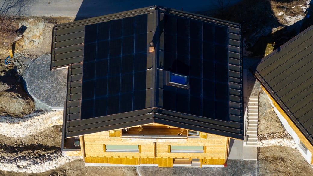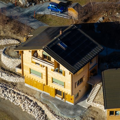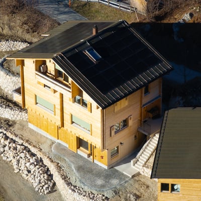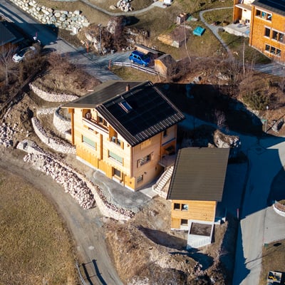 Ein neu erstelltes Einfamilienhaus in Schlans produziert mit einer grossflächigen Photovoltaikanlage seine eigene Energie. Gemeinsam mit der electro cadi aus Disentis haben wir hier die Module auf dem Dach des Hauses installiert.